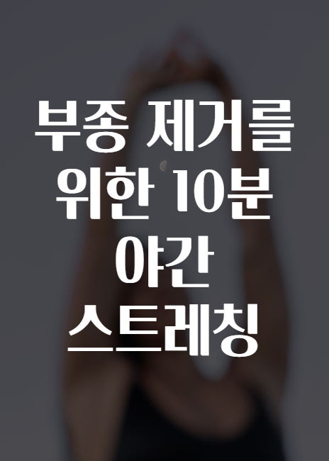 야간 스트레칭은 하루를 마감하며 신체의 긴장을 풀고, 부종을 감소시키는 데 도움을 줍니다. 이제부터 함께 10분만 투자해 부종을 제거하는 방법을 알아보겠습니다! 💪