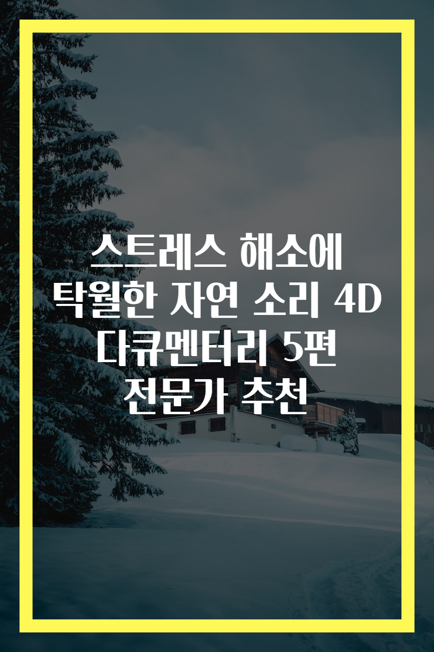 Meta Description: 자연 소리 4D 다큐멘터리 5편 소개로 스트레스 해소의 기회를 찾아보세요. 각 작품은 심리적 안정을 도와줍니다.