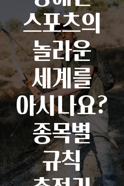 여러분, 혹시 "장애인 스포츠"라는 단어만 듣고 특별하기만 할까? 아니면 좀 어렵거나 멀게 느껴지진 않나요? 🧐 그런데 사실, 이 스포츠들은 누구나 함께 즐기고 도전할 수 있도록 배려가 가득한 세계랍니다! 🌍✨ 오늘은 장애인 스포츠의 다양한 종목별 규칙과 특징을 친절하고 쉽게 풀어 설명해 드릴게요. 운동을 사랑하는 마음, 장애를 넘어선 열정🔥, 그리고 함께하는 즐거움🎉을 느껴보세요!